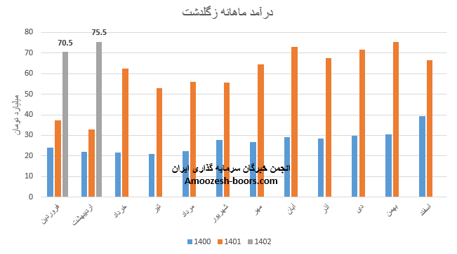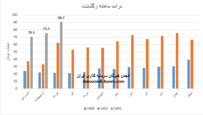نماد زگلدشت (شرکت کشت و دام گلدشت نمونه اصفهان) در تیر ماه 1402 حدود مبلغ 86 میلیارد تومان درآمد داشته که این میزان در مقایسه با ماه گذشته 5% کاهش و همچنین در مقایسه با مدت مشابه سال گذشته 62% رشد پیدا کرده است.