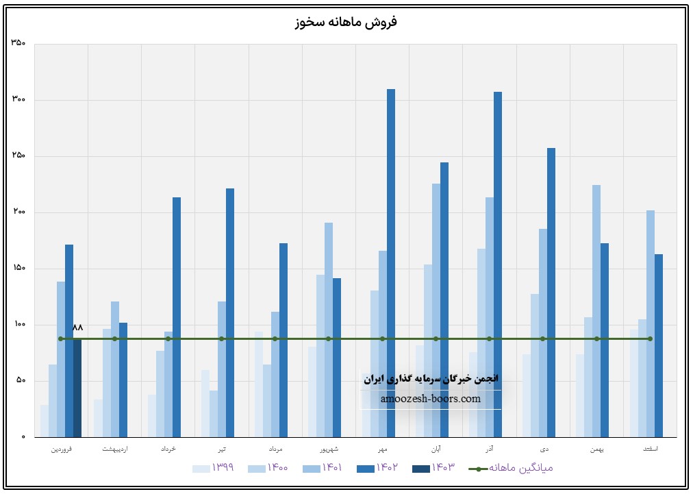 نماد سخوز در فروردین ماه حدود بیش از 78 هزار تن از محصولات خود را به فروش رسانده که این میزان در مقایسه با حجم فروش ماه گذشته خود حدود 50% کاهش پیدا کرده است.