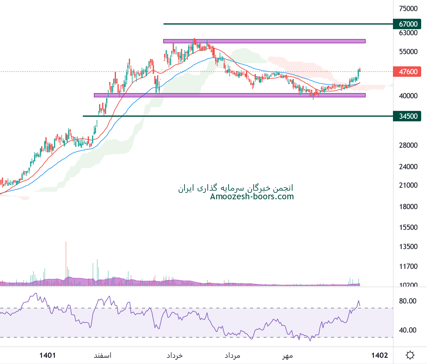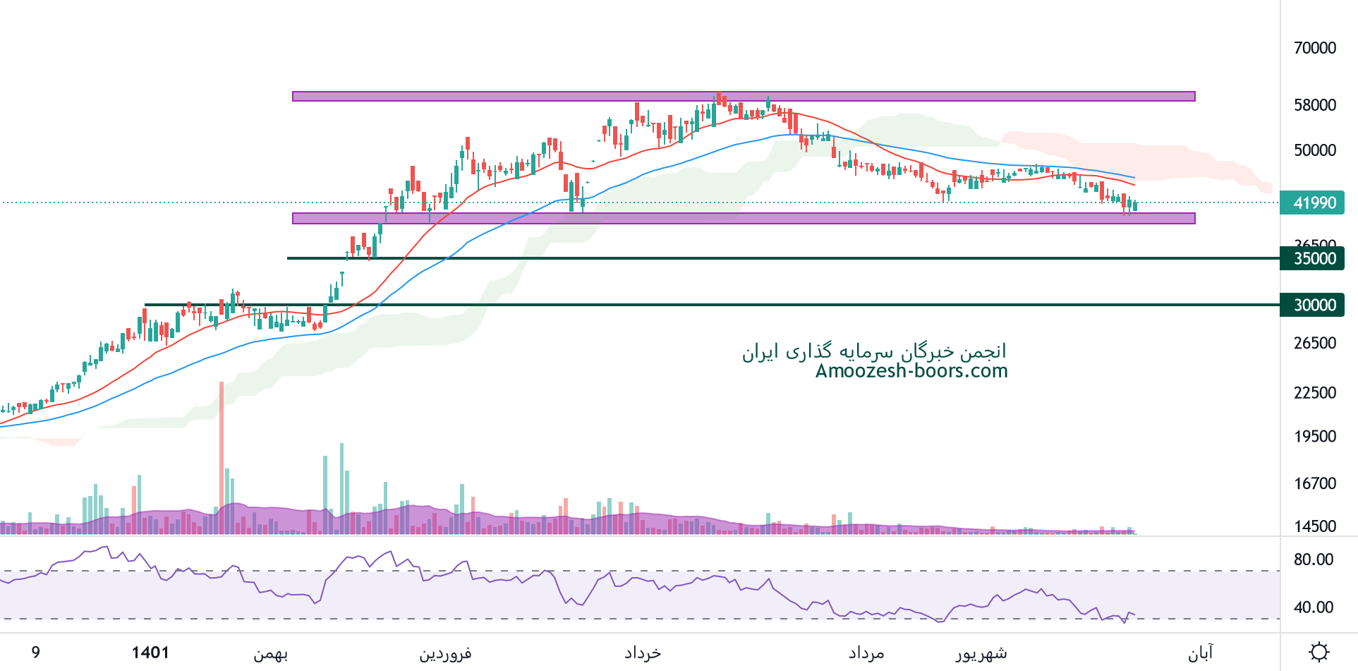 قیمت نماد سخوز با اصلاحی که داشته در حال حاضر به محدوده حمایتی 40000 ریال رسیده است، باید منتظر واکنش قیمت به این محدود بود، در صورت ادامه دار شدن اصلاح و از دست رفتن محدوده حمایتی ذکر شده، حمایت بعدی سهم سخوز 35000 ریال ارزیابی میگردد، همچنین در صورت تثبیت قیمت حرکت سخوز تا محدوده 60000 ریال دور از ذهن نخواهد بود.