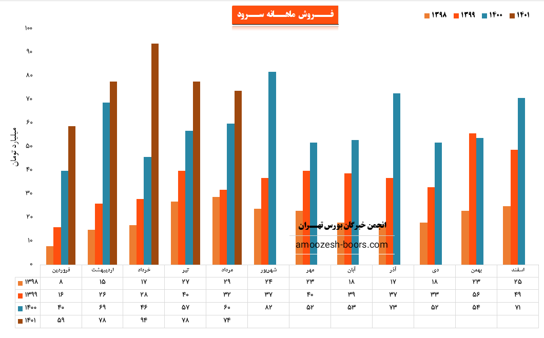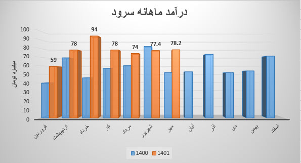 سهم سرود نسبت به دوره 1 ماهه مشابه سال قبل 5% کاهش درآمد داشته است.