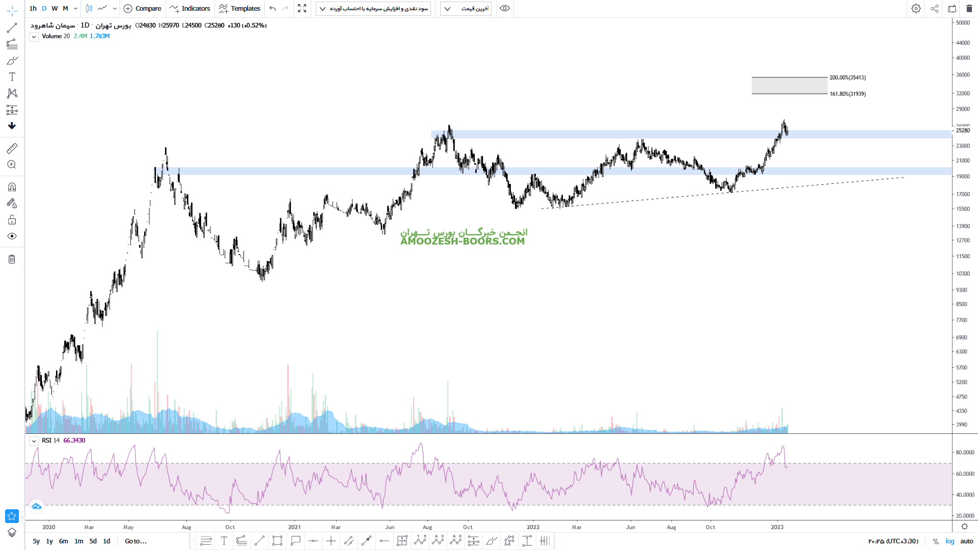 قیمت سهم سرود در حال حاضر مقاومت 20000 ریال را دارا میباشد، در صورت عبور سهم از این مقاومت، حرکت سهم تا 23700 ریال دور از ذهن نخواهد بود، همچنین در صورت اصلاح، اولین حمایت سهم سرود 17500 ریال در نظر گرفته خواد شد.