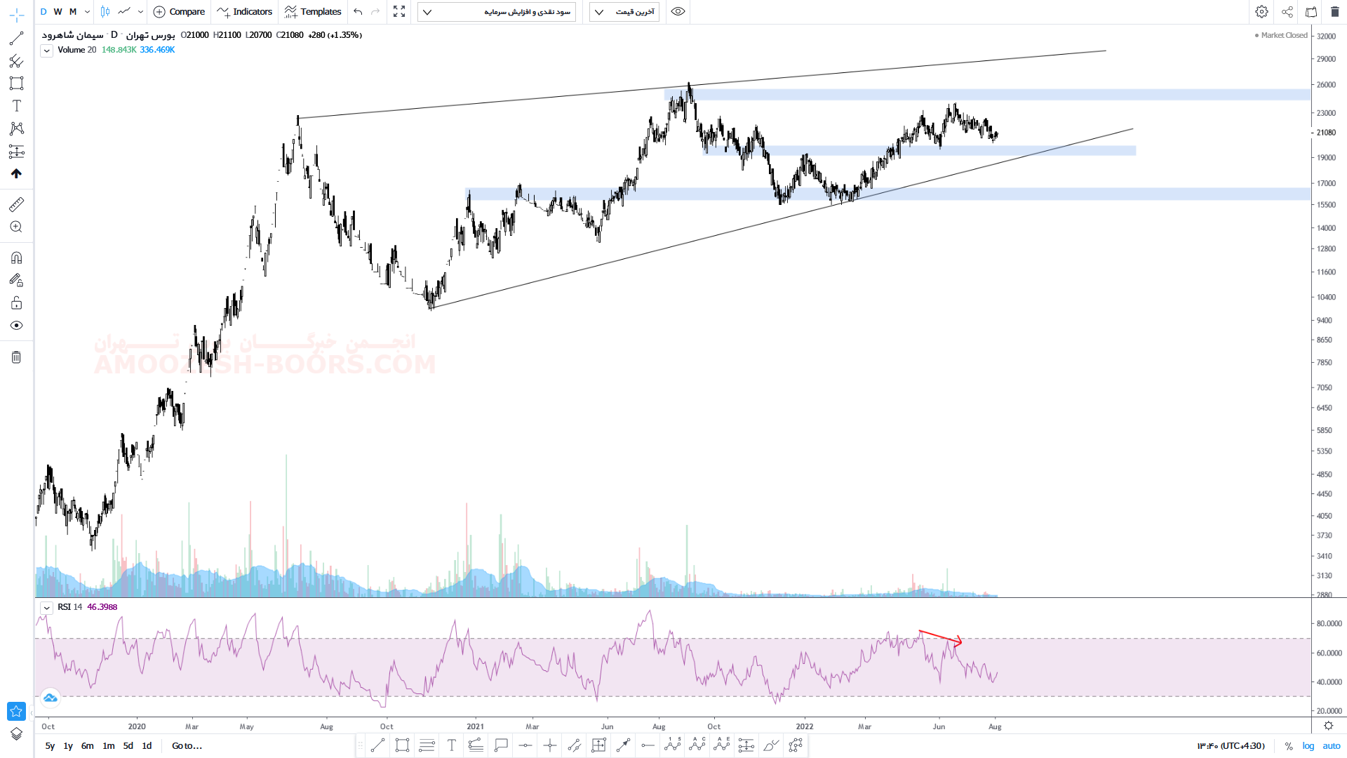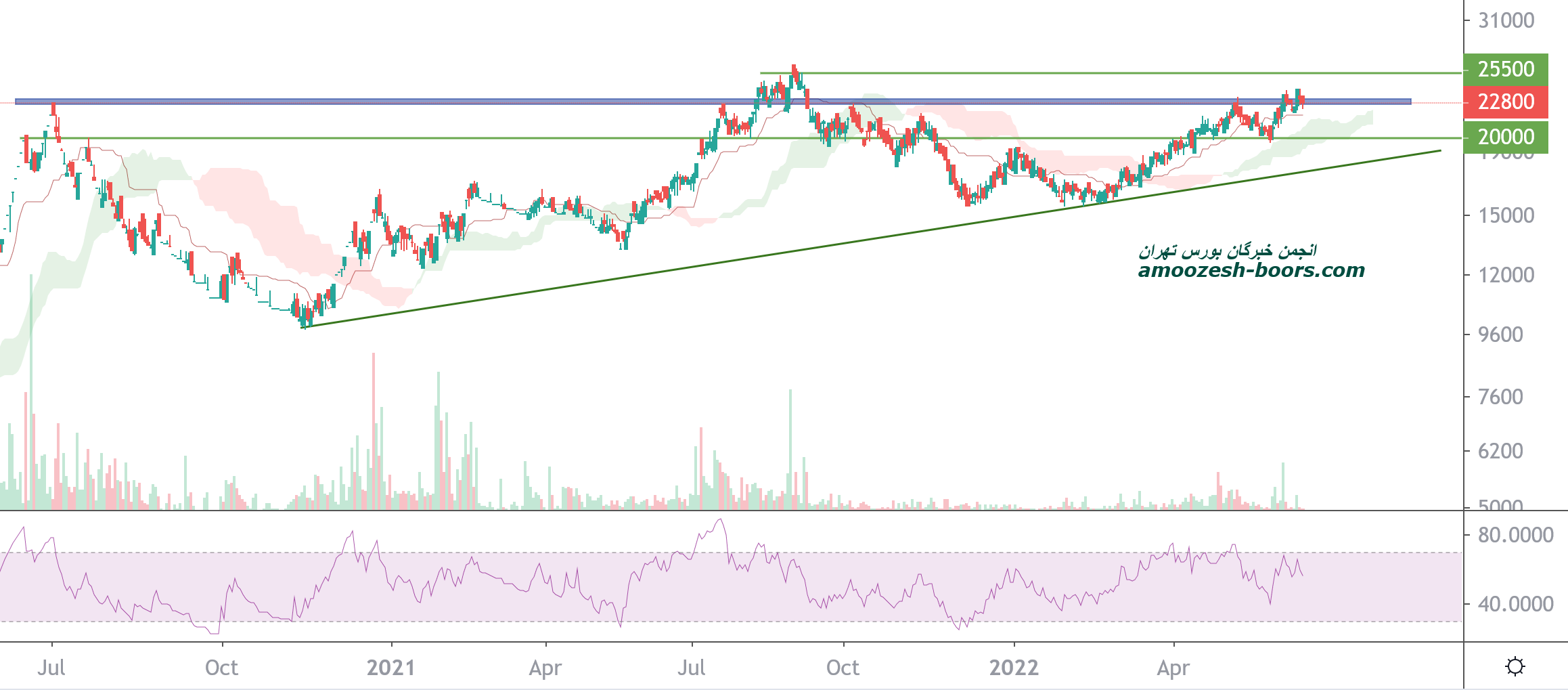 قیمت درگیر مقاومت 23000 ریال میباشد،در صورت عبور از این مقاومت تارگت سهم 25500 ریال خواهد بود،همچنین در صورت اصلاح سهم اولین حمایت 20000 ریال خواهد بود که در این صورت حد ضرر فعال خواهد شد.