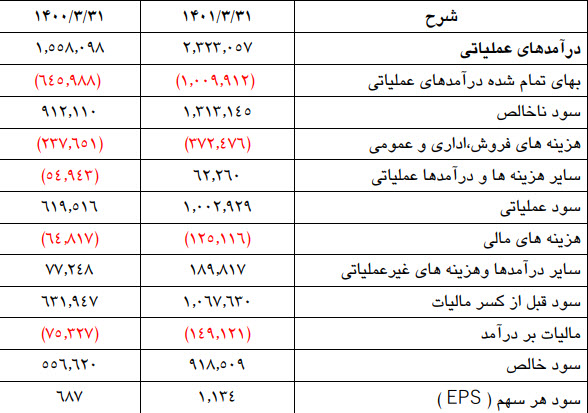 در مجموع در گزارش سه ماهه بهار خود به ازای هر سهم 1,134 ریال سود محقق کرده است که نسبت به دوره مشابه سال قبل (65%) افزایش داشته است.