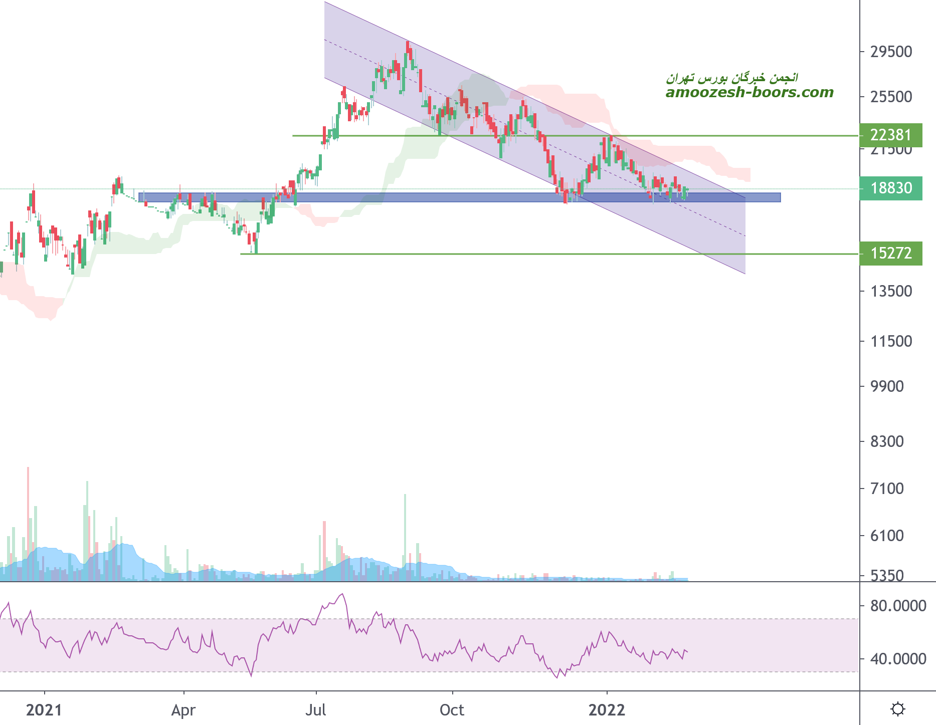 قیمت پس از برخورد به محدوده حمایتی مهم ۱۸۰۰تومان و رشد از سقف کانال نزولی خود خارج شده اکنون در حال انجام پولبک به این محدوده می باشد در صورت تایید پولبک میتواند رشد خود را تا محدوده مقاومتی ۲۲۰۰ تومان و در صورت شکست آن تا ۲۶۰۰ تومان نیز رشد خود را ادامه دهد اما در صورت عدم تایید پولبک محدوده حمایتی ۱۸۰۰تومان را سر راه خود خواهد دید.