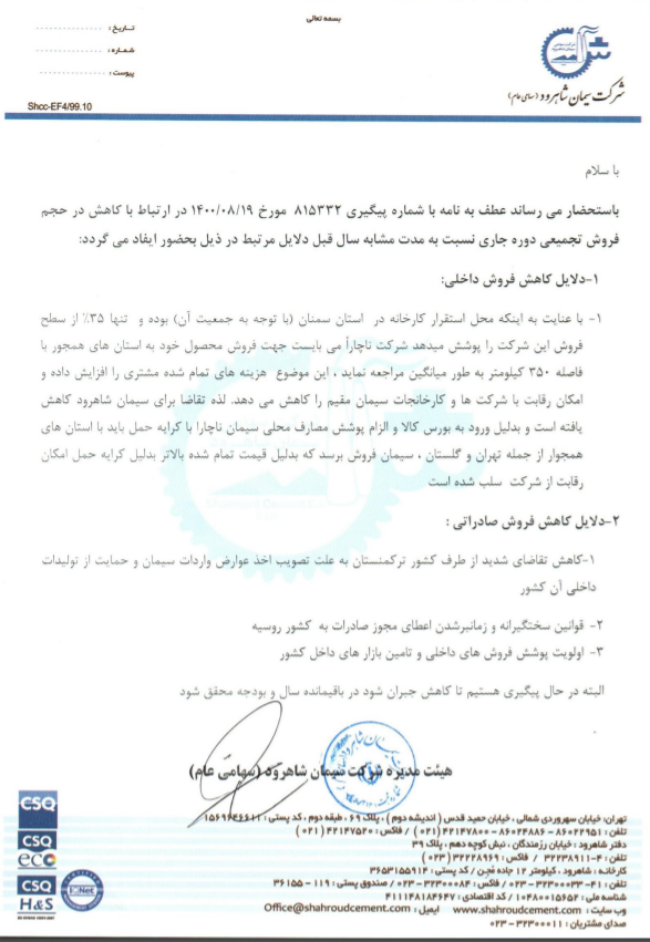 نام شرکت | شرکت سیمان شاهرود |