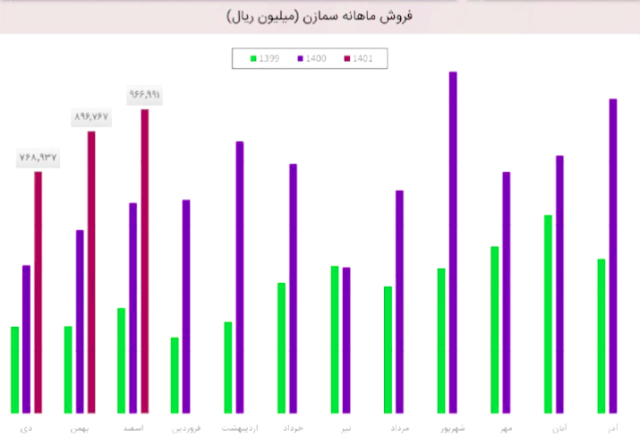 سمازن نسبت به دوره 1 ماهه مشابه سال قبل 52% افزایش درآمد داشته است.