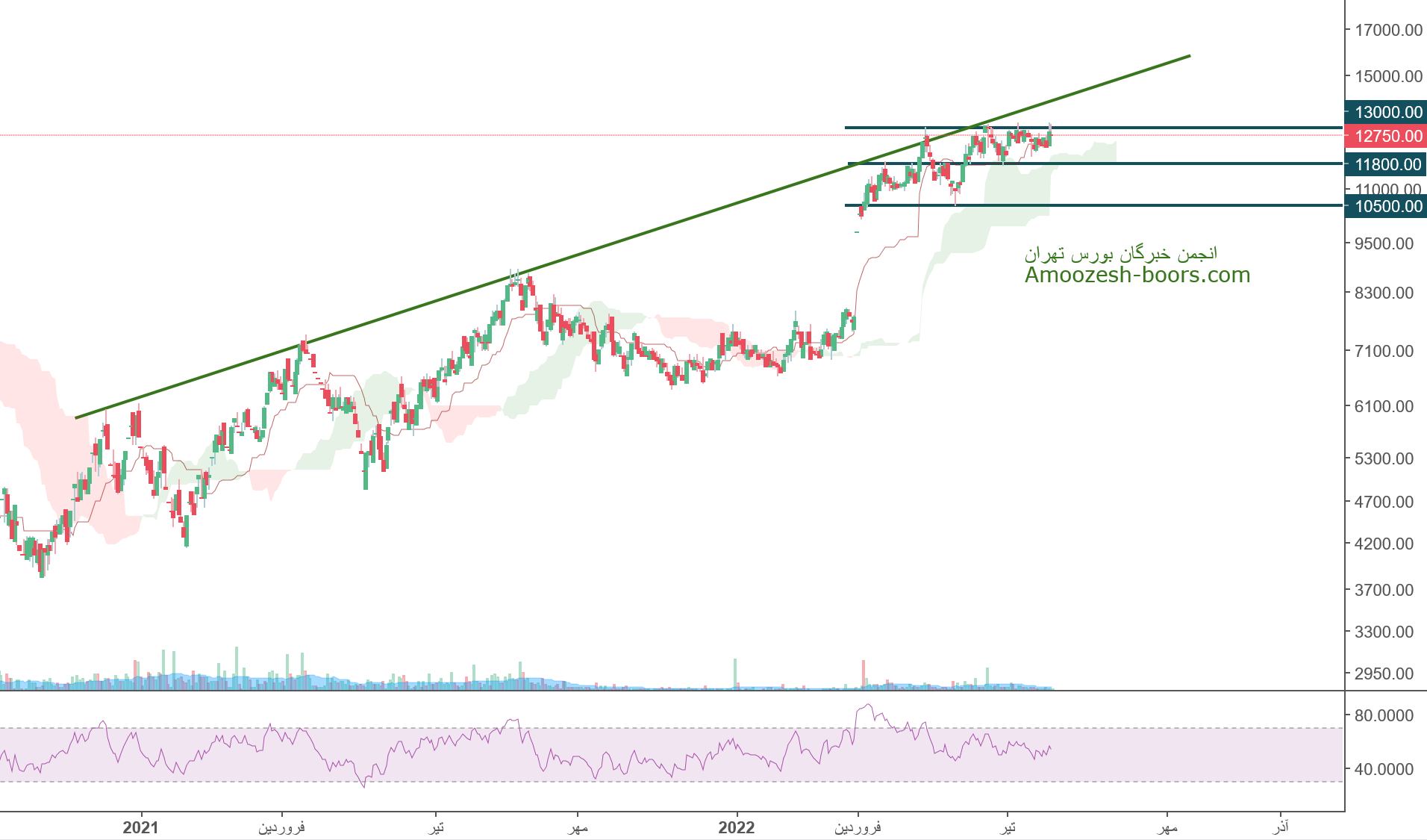 قیمت سهم سمازن در حال حاضر مقاومت 13000 ریال را دارا میباشد، در صورت عبور از این مقاومت، حرکت سهم تا 14500 ریال دور از ذهن نخواهد بود، همچنین در صورت اصلاح، حمایت بعدی سهم سمازن 11800 ریال در نظر گرفته خواهد شد.