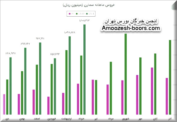 سمازن در اردیبهشت فروش فوقالعاده 1.048 میلیارد ریالی را ثبت کرده است. این مقدار در ماه گذشته و اردیبهشت سال قبل 756 و 864 میلیارد ریال گزارش شده بود که (90%) درصد آن مربوط به فروش داخلی و (10%) درصد آن مربوط به کل صادرات شرکت است.