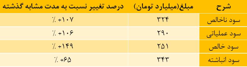 • افزایش دو برابری درامد های عملیاتی بعلت افزایش فروش و همچنین افزایش نرخ نسبت به سال گذشته