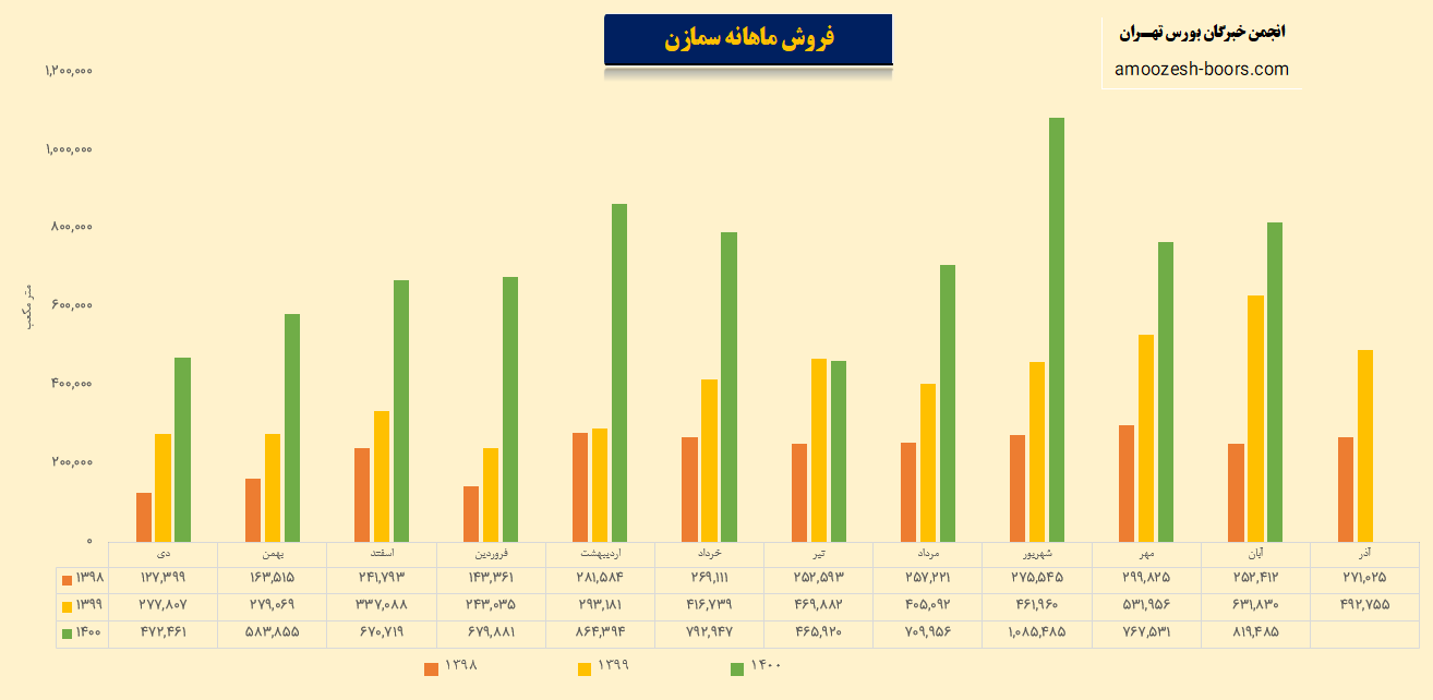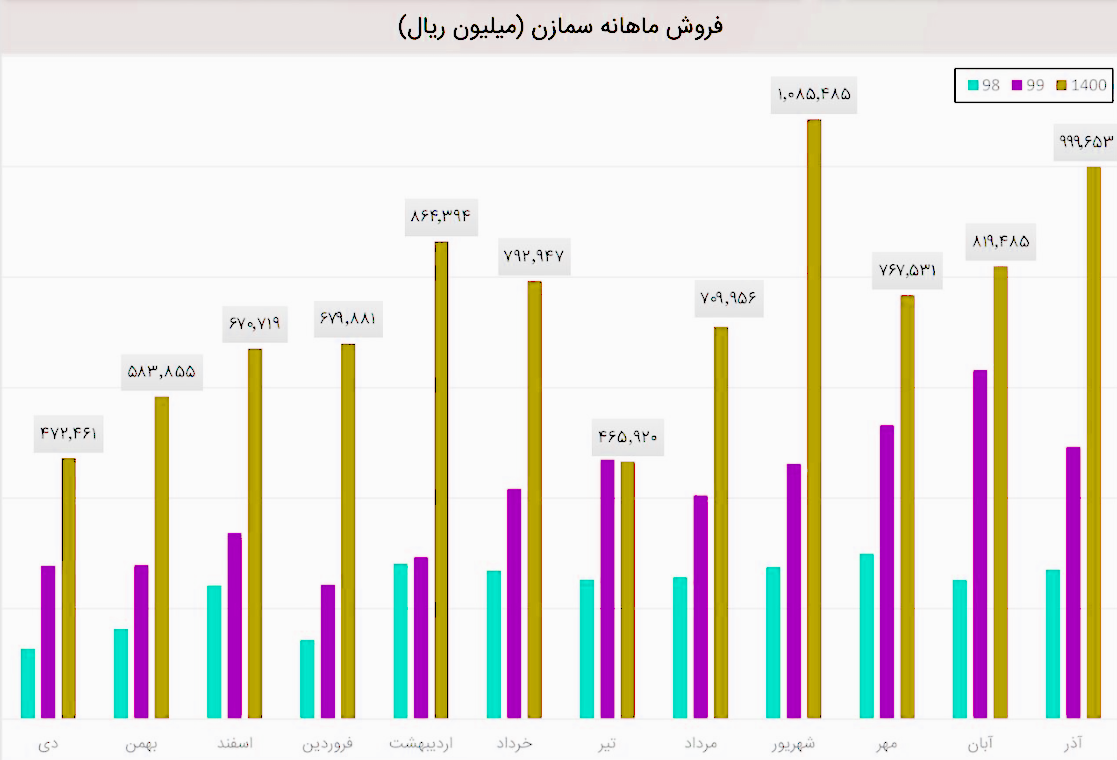 سمازن برای 3 ماهه باقیمانده به پایان سال مالی خود 228 میلیارد تومان درآمد پیشبینی کرده است که در مجموع فروش سال مالی 1400 مبلغی بالغ بر 1120 میلیارد تومان میشود که در مقایسه با سال گذشته 132 درصد رشد فروش پیشبینی شده است!