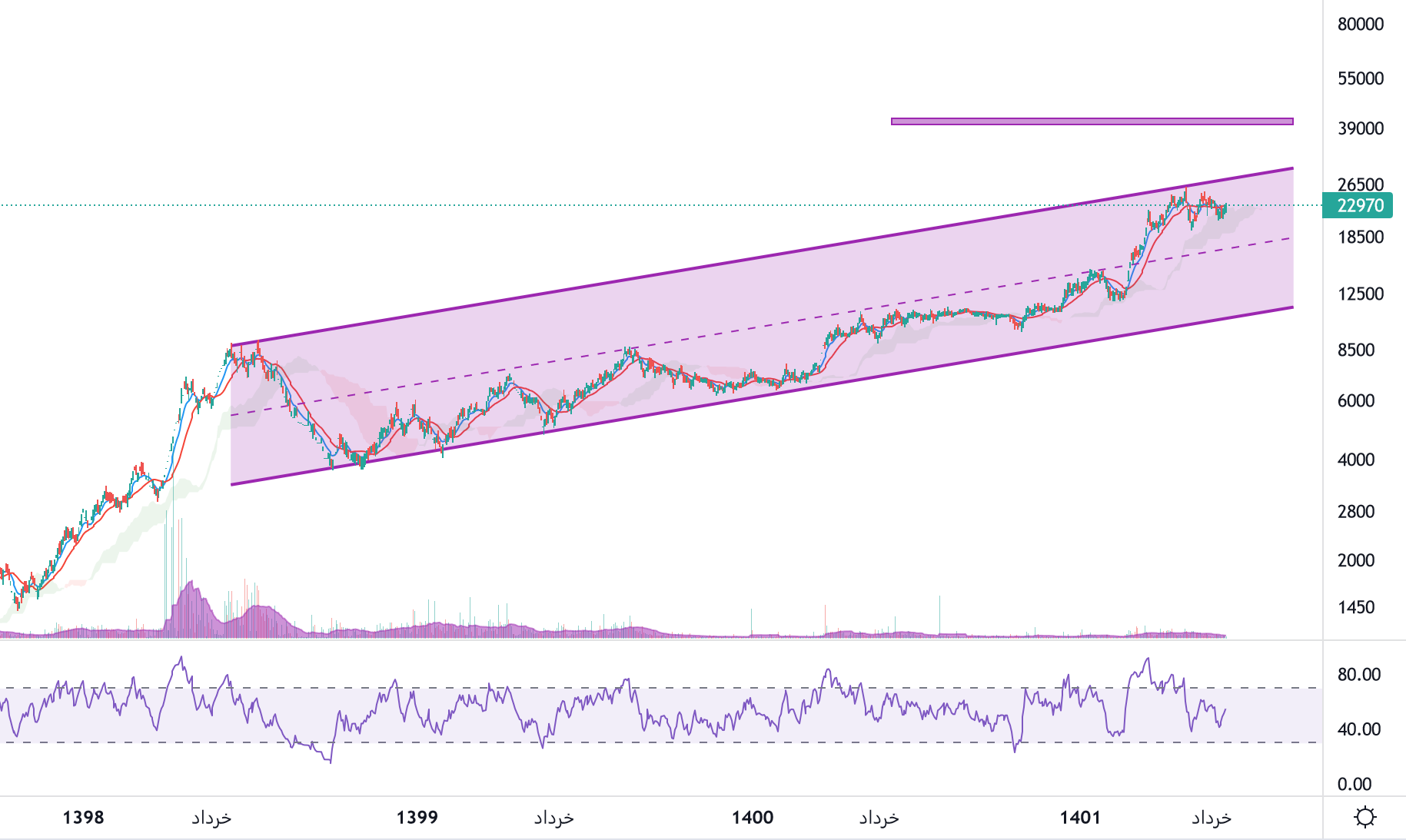 نماد سمازن به مقاومت سقف کانال صعودی در محدوده قیمتی26000 ریال رسیده، در صورتی که سهم سمازن کماکان به روند صعودی خود ادامه دهد و موفق به عبور از این محدوده مقاومتی شود، تارگت سمازت 40000 ریال ارزیابی خواهد شد، همچنین در صورت ورود سهم سمازن به فاز اصلاحی، اولین حمایت 18000 ریال خواهد بود.