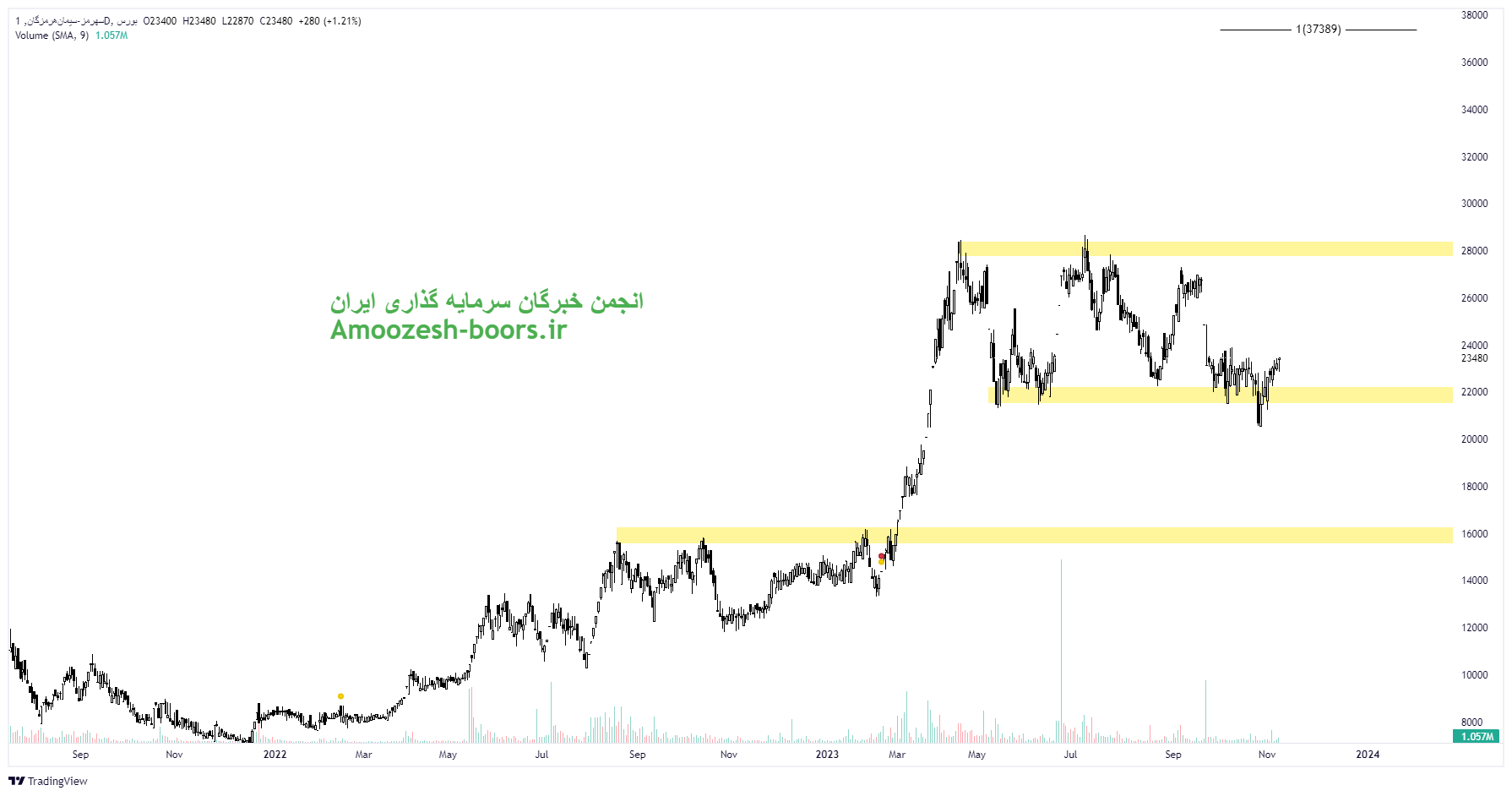 قیمت سهم سهرمز پس از برگشت مجدد به بالای حمایت از دست رفته اکنون مقاومتهای مهم ۲۸۰۰ و ۳۷۰۰ تومان را پیش روی خود دارد. همچنین در صورت افت تقاضا در کلیت بازار و همچنین سهم سهرمز حمایتهای مهم این سهم به ترتیب نواحی ۲۲۰۰ و ۱۶۰۰ تومان در نظر گرفته خواهد شد.