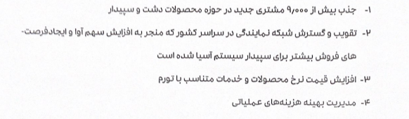 همچنین شرکت در خصوص افزایش سی درصدی سود عملیاتی را نسبت به مدت مشابه سال قبل موارد زیر را اعلام نموده است :