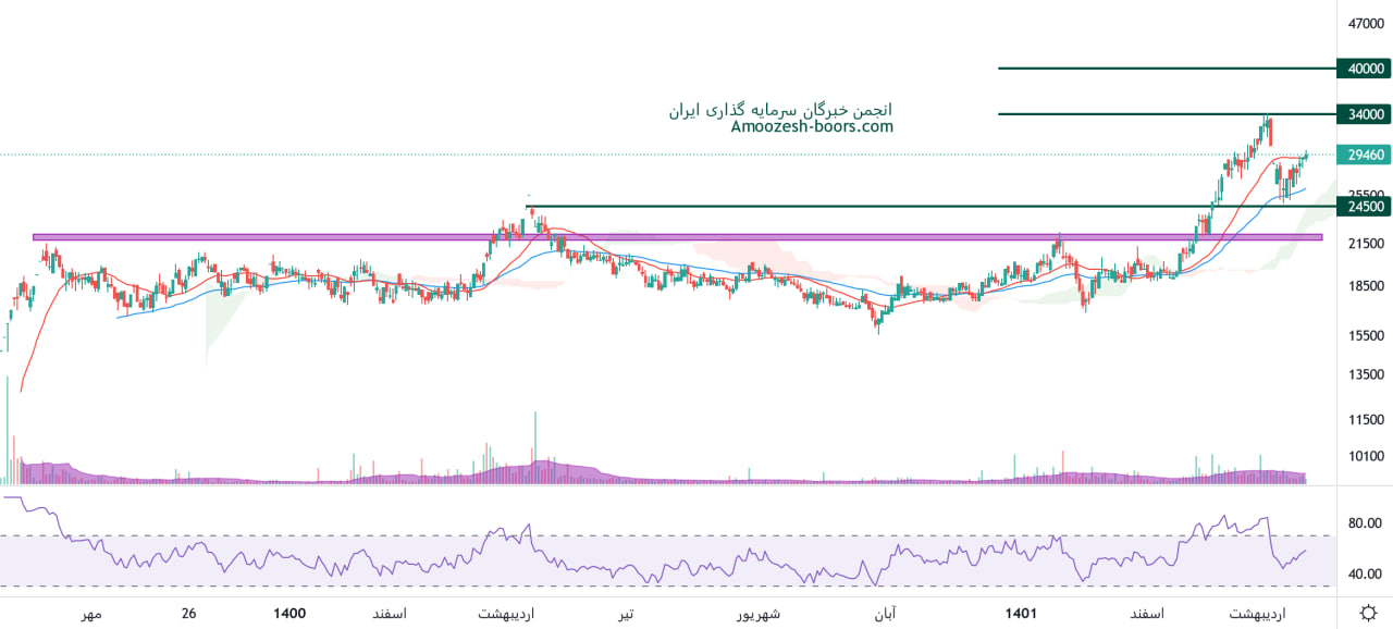 نماد سپید بعد از موج کوتاه اصلاحی به سطح حمایتی 24500 ریال واکنش مثبت نشان داد و در حال حاضر سطح مقاومتی 34000 ریال را پیش روی خود دارد، در صورت عبور قیمت سهم سپید از این سطح مقاومتی، مقاومت بعدی این نماد 40000 ریال در نظر گرفته خواهد شد، همچنین در صورت از دست رفتن حمایت ذکر شده، اصلاح قیمت تا محدوده 22000 ریال ادامه دار خواهد بود.