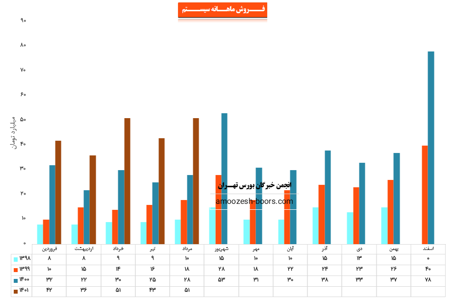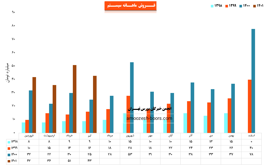 نماد سیستم (شرکت همکاران سیستم) در مرداد ماه ۱۴۰1 حدود مبلغ 51 میلیارد تومان درآمد داشته که این میزان در مقایسه با ماه گذشته 19% و همچنین در مقایسه با مدت مشابه سال گذشته 82% رشد درآمد پیدا کرده است.