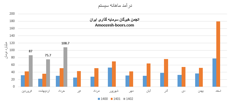 فروش سیستم طی عملکرد ماهانه به 94 میلیارد تومان رسیده است که در مقایسه با ماه گذشته و متوسط ماهانه 4% رشد داشته است.