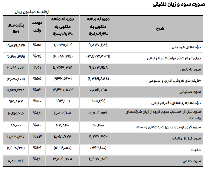 صورت مالی میاندوره ای 9 ماهه سال 1401 نماد سیستم