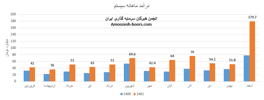 درآمد بهمن ماه نماد سیستم با کاهش 4 درصدی نسبت به ماه قبل و 2 درصدی نسبت به متوسط ماهانه به درآمد 51.8 میلیارد تومانی رسید . این رقم در مقایسه با مدت مشابه 40 درصد رشد داشته است . درآمد کنترل کيفيت توليد  با سهم 52 درصدی از فروش ماهانه عمده ترین عامل رشد درآمد همکاران سیستم گزارش شده که نسبت به ماه قبل رشد 7 درصدی داشته است.
