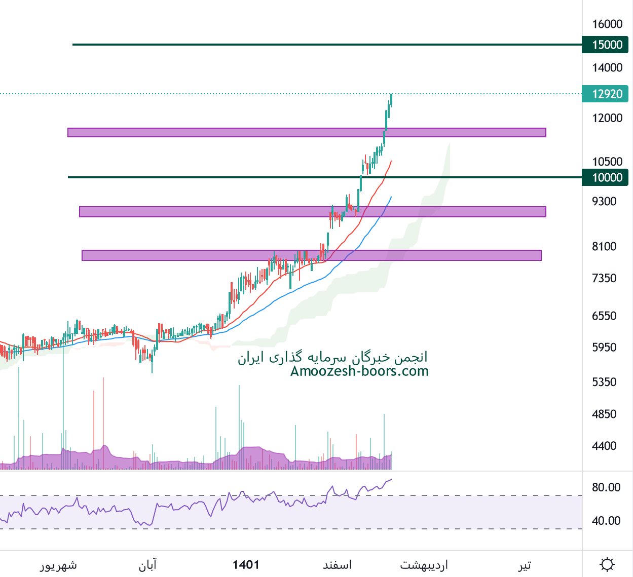 نماد سیستم در حال حرکت به سمت تارگت 15000 ریال میباشد، در صورت ورود سهم به فاز اصلاحی، اولین حمایت محدوده 11500 ریال در نظر گرفته خواهد شد.