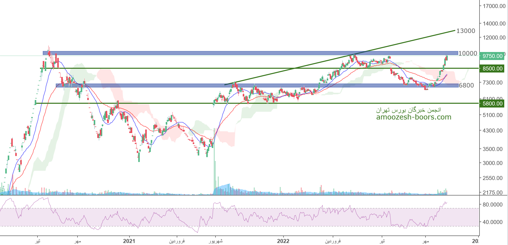 قیمت سهم شبندر در حال حاضر مقاومت 10000 ریال را دارا میباشد، در صورت عبور از این مقاومت و تثبیت بالای این سطح، حرکت سهم تا 13000 ریال دور از ذهن نخواهد بود، همچنین در صورت اصلاح، اولین حمایت سهم شبندر 8500 ریال ارزیابی میگردد.
