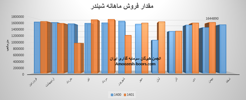 سهم شبندر (پالایشگاه نفت بندرعباس) در فروردین ماه سال ۱۴۰۲ حدود بیش از 1/631/000هزار متر مکعب از محصولات خود را به فروش رسانده که از پرفروش ترین آن از نظر حجمی می توان به نفت گاز با سهم 563 هزار مترمکعب از فروش در رتبه اول و بنزین موتور با ۳۸۶ هزار مترمکعب در رتبه دوم به عنوان پرفروش ترین محصولات سهم شبندر در این ماه اشاره کرد.