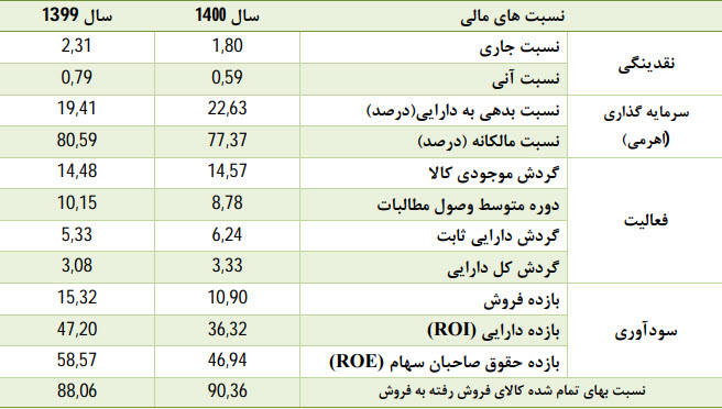 نسبت های مالی سهم شتران در مقایسه با سال گذشته به شرح زیر میباشد :