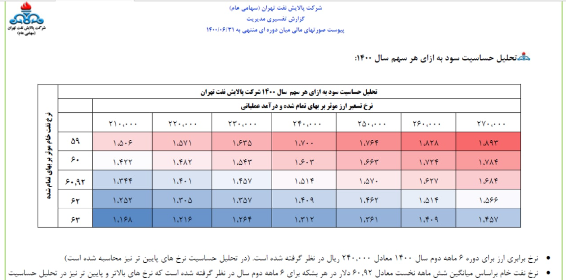 تاثیر دلار بر نرخ فروش شرکت | رشد نرخ دلار منجر به شناسایی سود از محل صادرات محصولات و همچنین تسعیر ارز میشود |