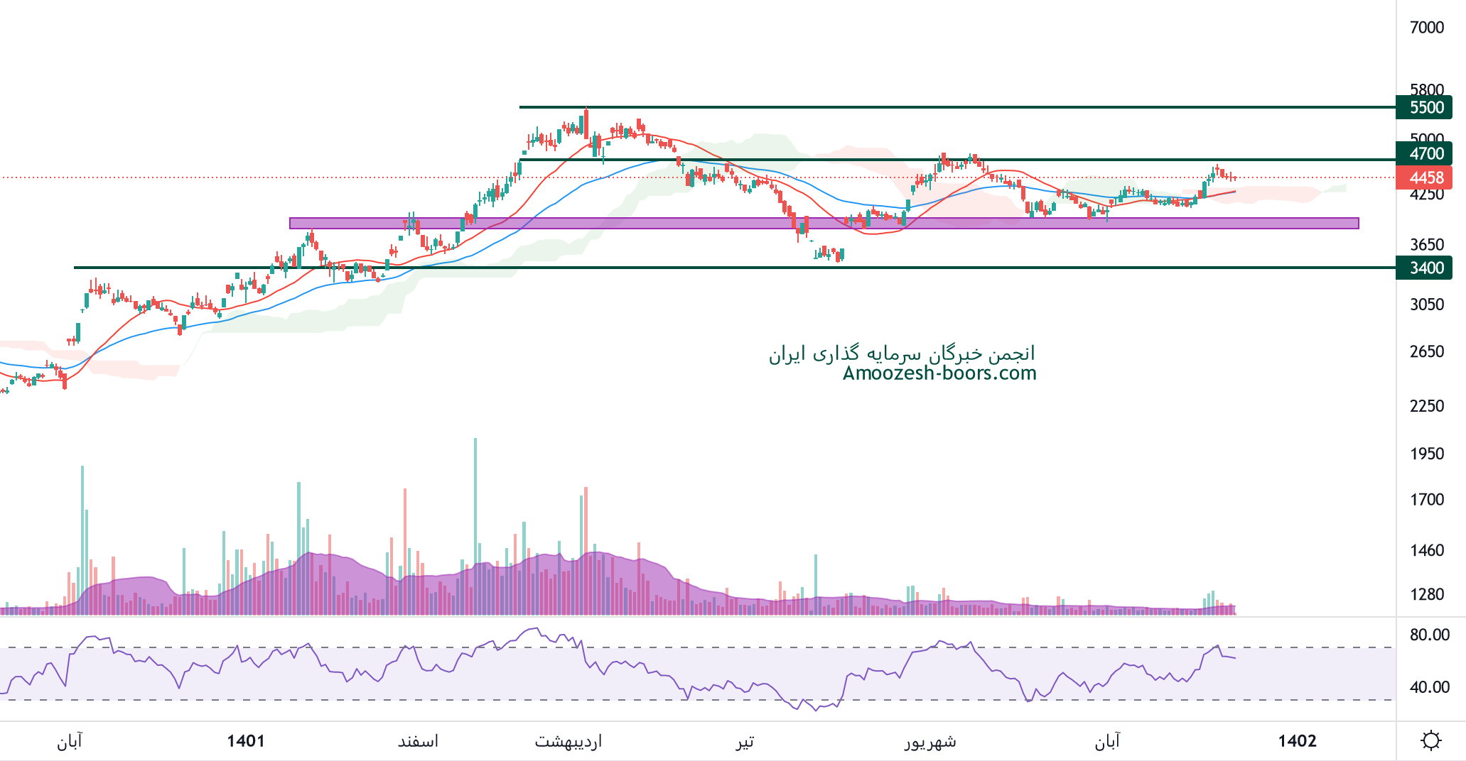 قیمت سهم شتران پس از برخورد به ناحیه حمایتی ۳۴۰ تومان مورد حمایت قرار گرفته و در همین راستا مقاومتهای ناحیه ۵۳۰ و ۶۸۰ تومان مقاومتهای پیش روی سهم شتران محسوب میشوند. لذا در صورت افت تقاضا در کلیت بازار و همچنین سهم شتران اولین حمایت سهم ناحیه ۳۴۰ تومان در نظر گرفته خواهد شد.