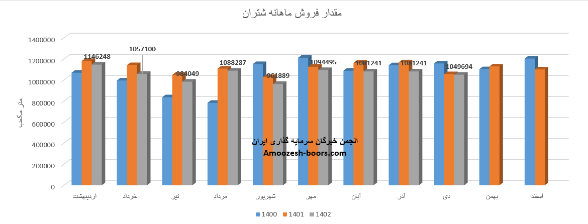 فروش آذر ماه سال 1402 سهم شتران 1049694 مترمکعب گزارش شده است، تغییرات فروش شتران به شرح زیر میباشد: