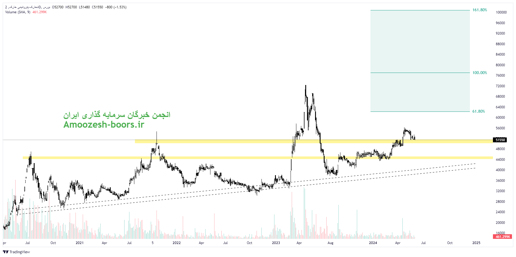 سهم شخارک با عبور از مقاومت ناحیه ۵۱۰۰۰ ریال اکنون در حال پولبک به این مقاومت شکسته شده میباشد لذا در صورت حفظ تقاضای به وجود آمده در سهم و همچنین تایید پولبک، حرکت صعودی سهم شخارک تا مقاومت ناحیه62 هزار ريال، 77 هزار ریال و 100 هزار ريال در میان مدت ادامه خواهد داشت. همچنین در صورت عدم تایید پولبک و برگشت مجدد به زیر مقاومت ۵۰ هزار ریال، نزدیکترین حمایت به سهم شخارک ناحیه ۴۵ هزار ریال در نظر گرفته خواهد شد.