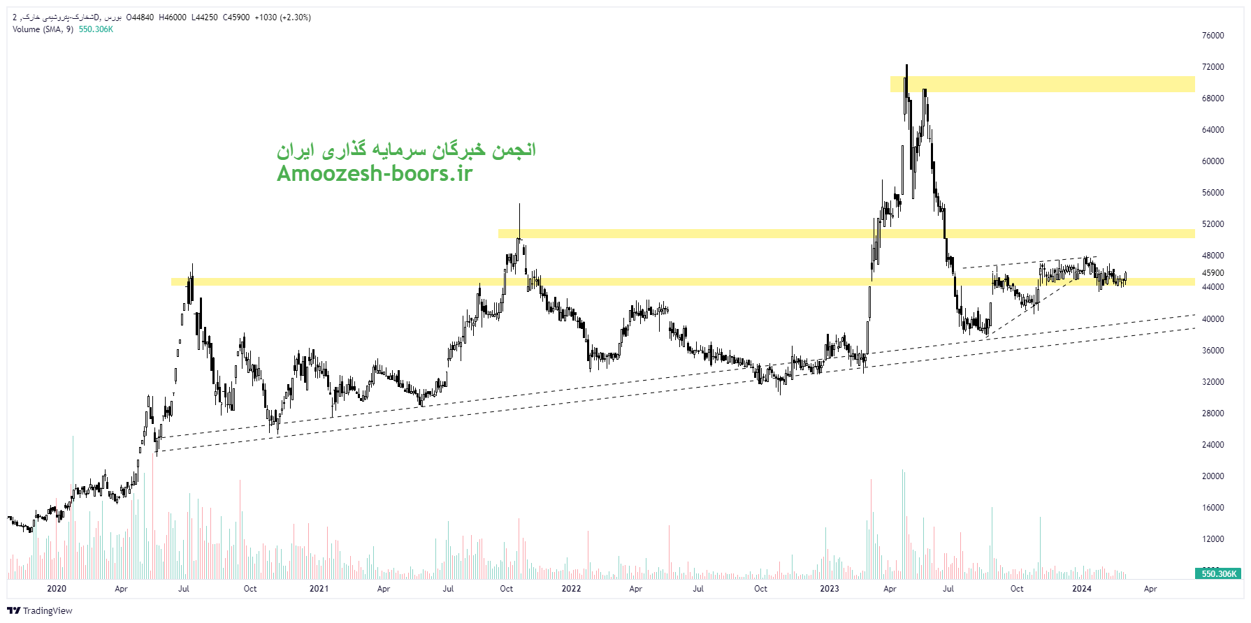 سهم شخارک با قرار گرفتن بر روی حمایت ناحیه 4400 تومان مورد حمایت و تقاضای بازار قرار گرفته و اکنون در صورت حفظ تقاضای بوجود آمده در کلیت بازار میتواند حرکت صعودی خود را به سمت مقاومت های ناحیه 5100 و 6900 تومان ادامه دهد. همچنین درصورت افت تقاضا و برگشت مجدد سهم، حمایت های مهم 4400 و 4000 تومان پیش روی سهم قرار دارند.