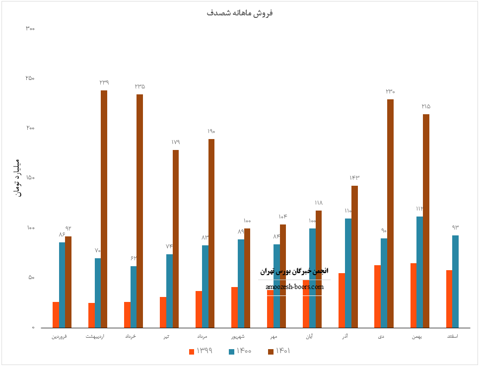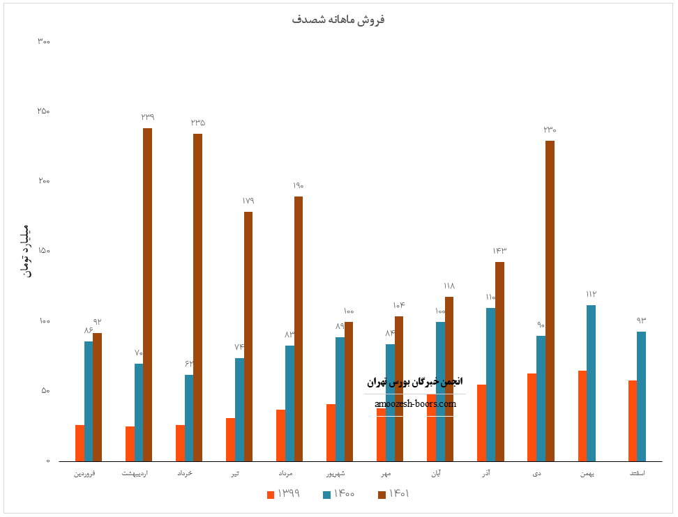 شصدف درآمد 150.9 میلیارد تومان را در گزارش ماهانه فروردین خود شناسایی نموده، 66% از این درآمد از طریق بازار صادراتی تامین شده و مابقی از طریق فروش داخلی هرچند این فروش افت 22 درصدی نسبت به ماه قبل را نشان میدهد اما با توجه به تعطیلات نوروز و رشد 64 درصدی نسبت به مدت مشابه عملیات مطلوبی در نظر گرفته خواهد شد، دوده صنعتی صادراتی در مقایسه با ماه گذشته با افزایش نرخ 17% و کاهش 66 درصدی در مقدار فروش همراه بوده است.