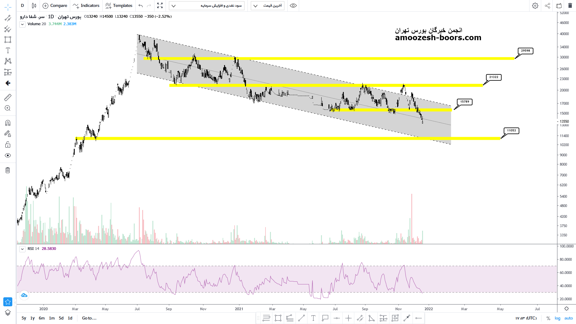 درصورت حمایت از این محدوده، قیمت میتواند تا محدوده 1300 و در صورت شکست آن سیگنال ورود صادر و تا محدوده 1700 تومان صعود کند