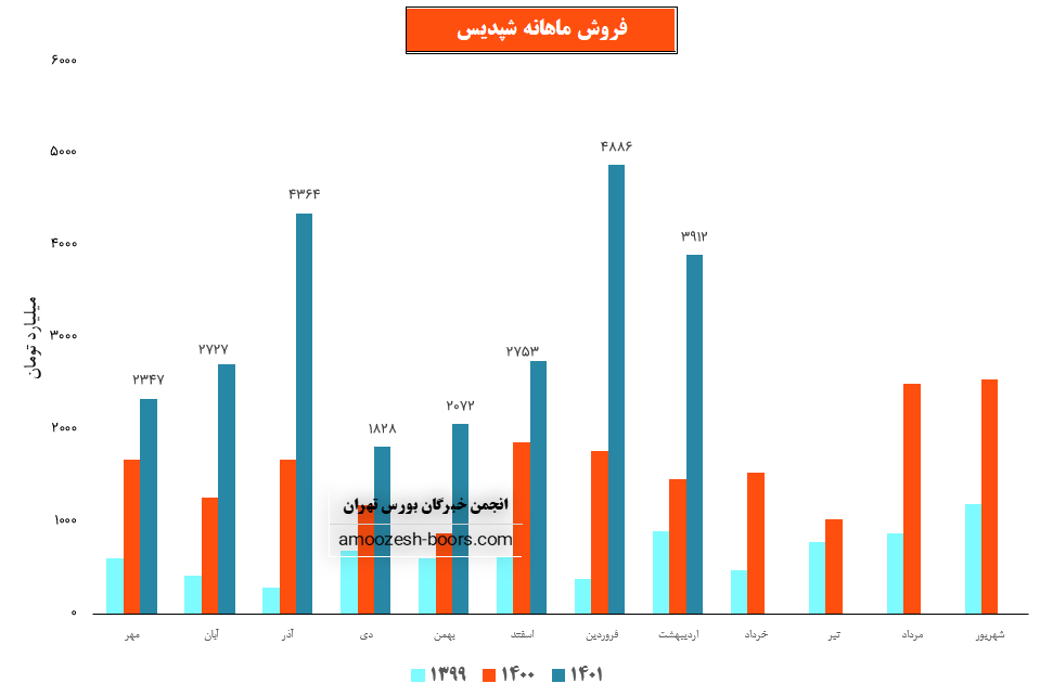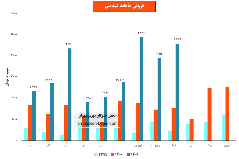 فروش نماد شپدیس: 16137 میلیارد تومان که نسبت به دوره مشابه گذشته 82% افزایش یافته است.