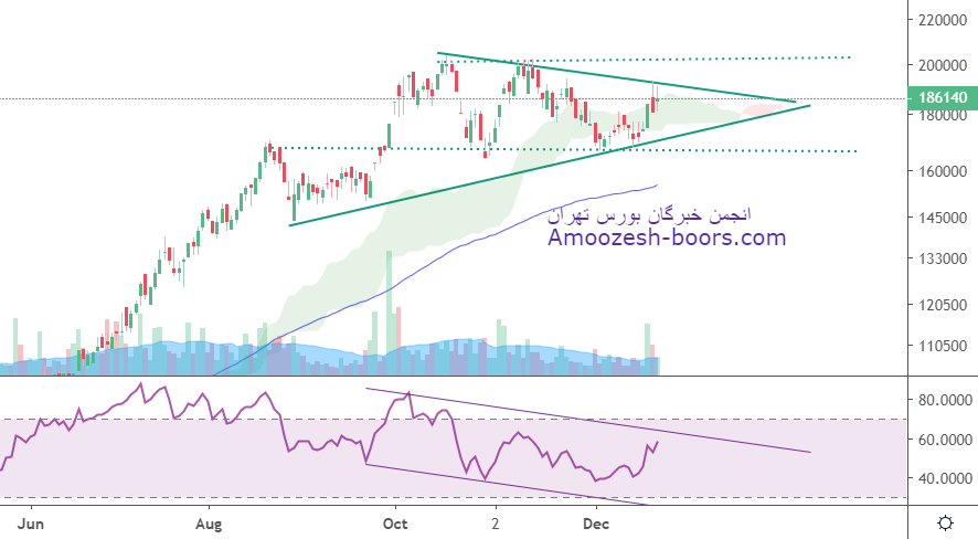 همچنین قله قیمتی و مقاومت روانی عدد رند ۲۰۰۰۰ریال بر سر راه سهم میباشد که در صورت شکست مقاومت داینامیک نزولی، اولین تارگت کوتاه مدت برای سهم در نظر گرفته خواهد شد .