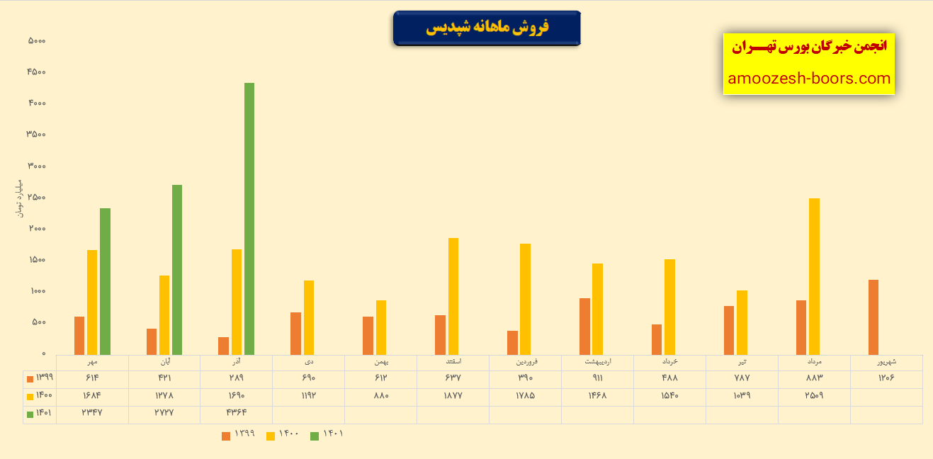 گفتنی است،نماد شپدیس در مهر ماه فروش بسیار خوب 20.596 میلیارد ریالی را ثبت کرده و به نظر در نخستین کوارتر از سال جدید هم شرایط خوبی داشته باشد.