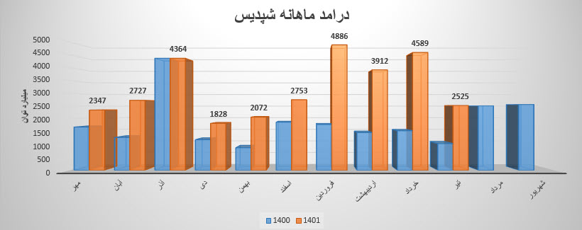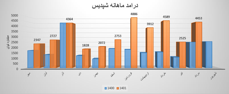 نماد شپدیس در دوره 10 ماهه از سال 1401 موفق شده 62 درصد بیشتر از بودجه سال 1400 را پوشش دهد.