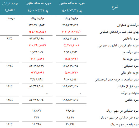 شرکت پتروشیمی پردیس با نماد شپدیس در دوره 9 ماهه منتهی به 1401/03/31 به ازای هر سهم 30,464 ریال سود محقق کرده است که نسبت به مدت مشابه سال قبل 114% افزایش داشته است.
