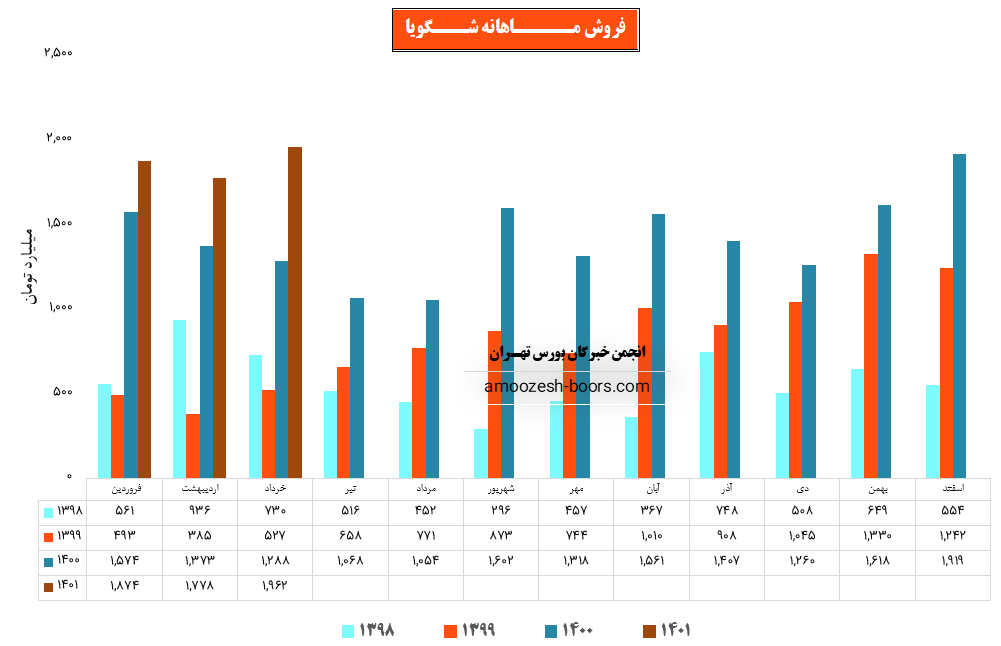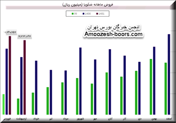 فروش نماد شگویا : 17046 میلیارد تومان که نسبت به دوره مشابه گذشته 71% افزایش یافته است.
