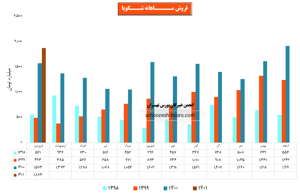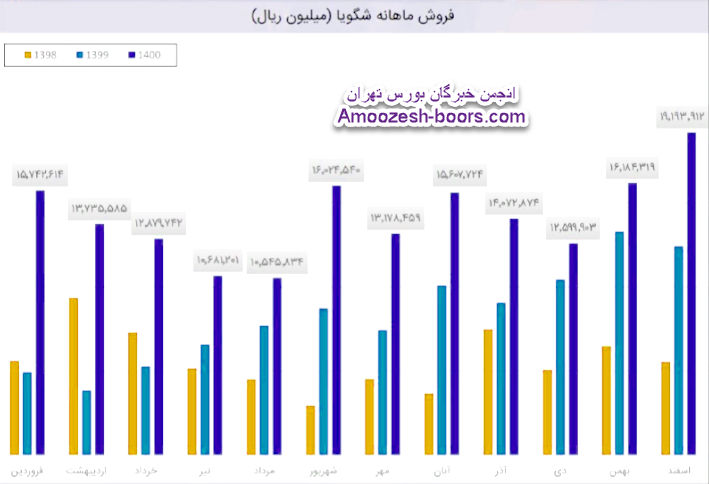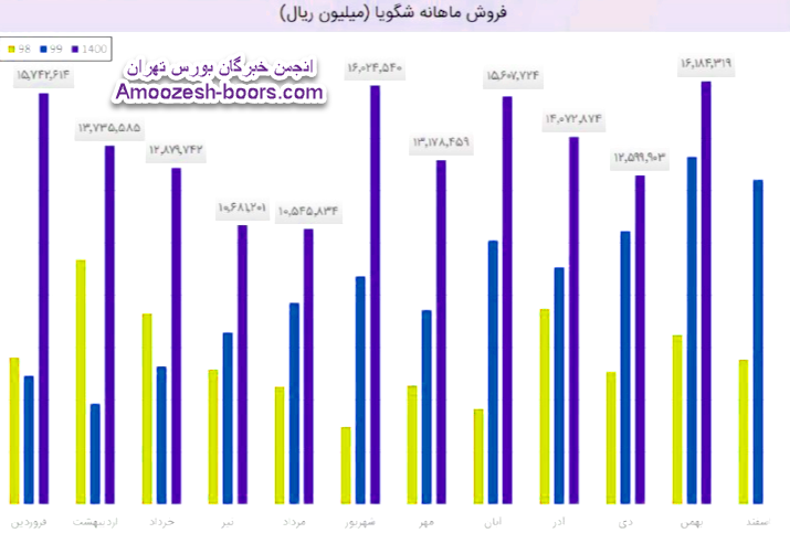 نماد شگویا در فروردین ماه بیش از ۵۸ میلیون کیلوگرم از محصولات خود را به فروش رساند که این میزان در مقایسه با حجم فروش اسفند ماه حدود 1% افزایش پیدا کرده است.