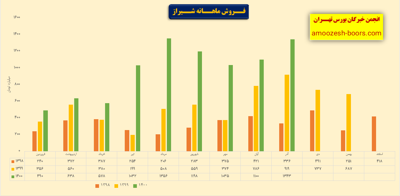 فروش نماد شیراز: 8805 میلیارد تومان که نسبت به دوره مشابه گذشته 75% افزایش یافته است.