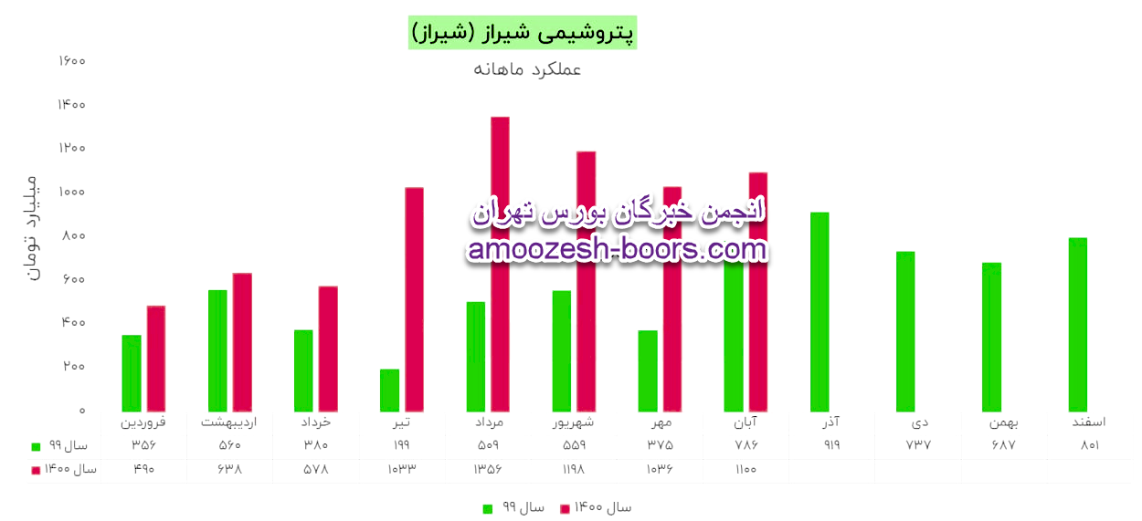 شرکت پتروشیمی شیراز طی عملکرد 1 ماهه منتهی به 1400/08/30 معادل 11,005,705 میلیون ریال از محصولات خود را به فروش رسانده که نسبت به دوره 1 ماهه مشابه سال قبل 40% افزایش داشته است. مقدار تولید اوره و فروش صادراتی آن در آبان به ترتیب برابر با 101،606 و 53،952 تن بوده که مقدار تولید 5% افزایش اما مقدار فروش صادراتی 34% نسبت به مهر ماه کاهش داشته است.