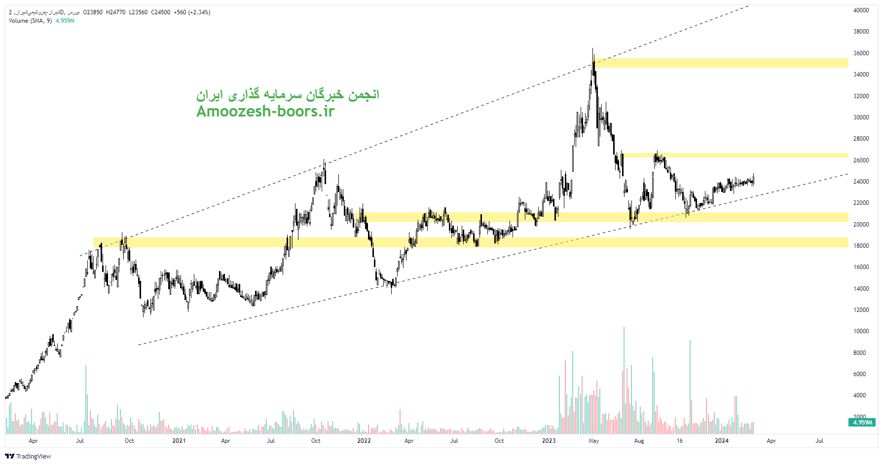 سهم شیراز مقاومت مهم ناحیه 2600 تومان را پیش روی خود میبیند که در صورت عبور از این ناحیه مهم، حرکت سهم تا مقاومت بعدی یعنی ناحیه 3500 تومان ادامه خواد داشت. همچنین در صورت ایجاد فشار عرضه در کلیت بازار و برگشت مجدد سهم، مهم ترین حمایت سهم شیراز ناحیه 2300 تومان در نظر گرفته خواهد شد.