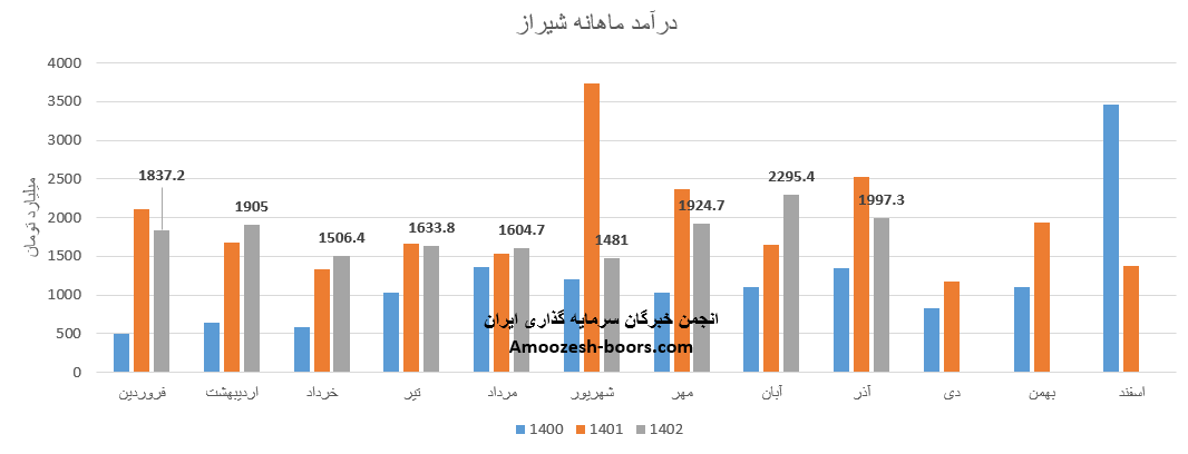 درآمد ماهانه نماد شیراز نسبت به ماه گذشته 6% رشد، نسبت به متوسط ماهانه 18% رشد و نسبت به مدت مشابه 81% رشد را تجربه نموده است.