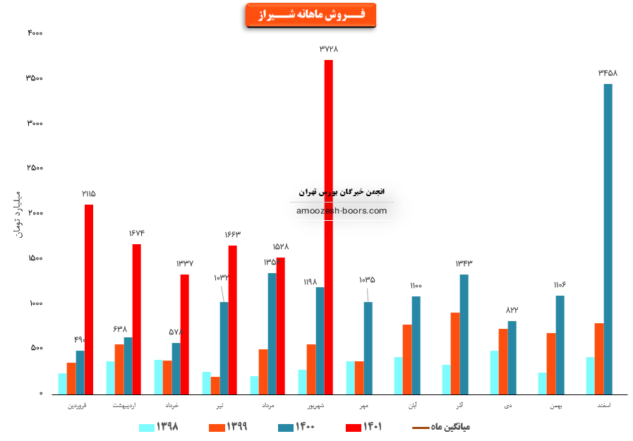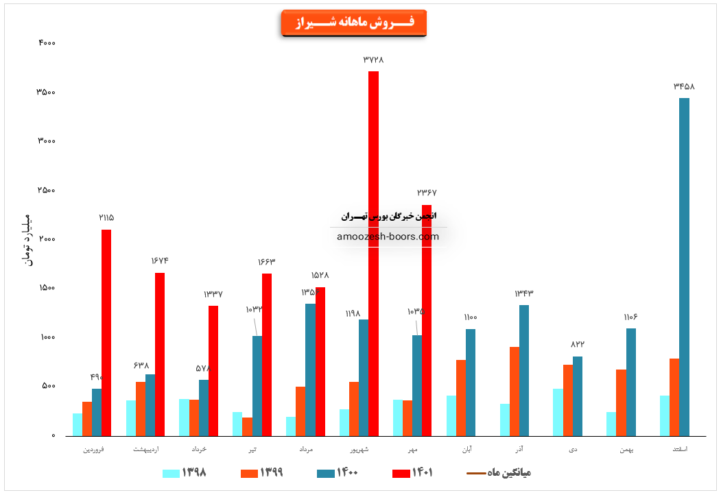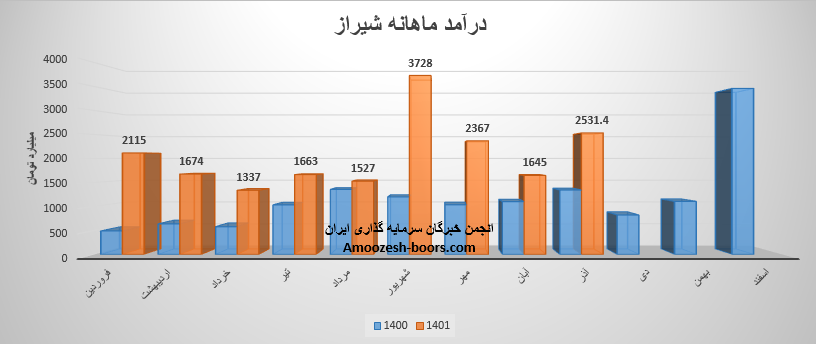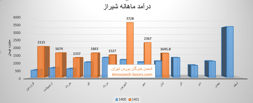 فروش ماهانه شیراز تغییرات زیر را تجربه نموده است .