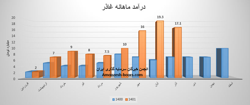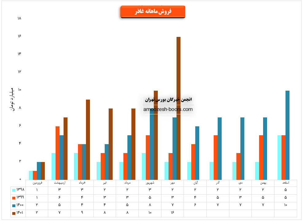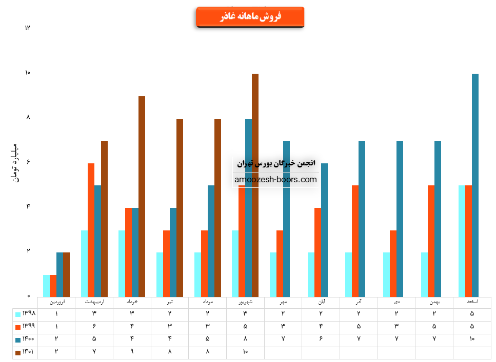 فروش نماد غاذر: 44 میلیارد تومان که نسبت به دوره مشابه گذشته 52% افزایش یافته است.