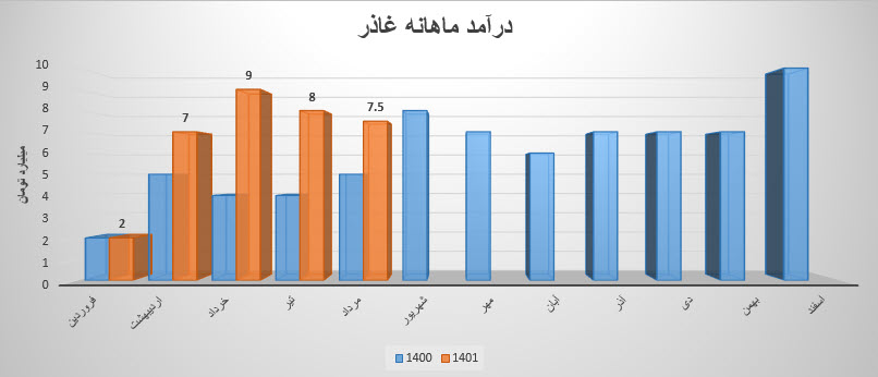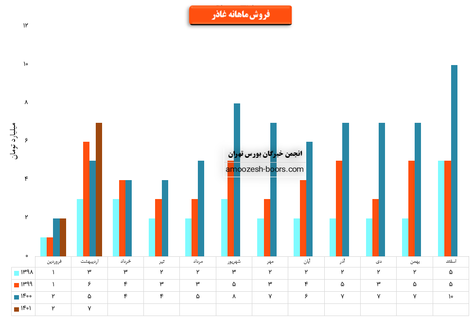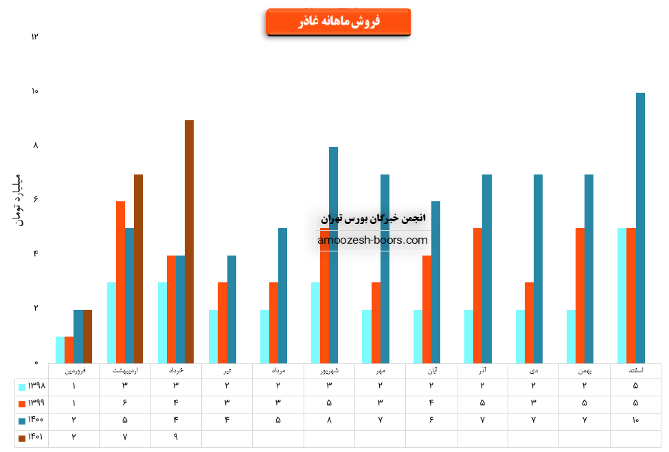 فروش نماد غاذر: 18 میلیارد تومان که نسبت به دوره مشابه گذشته 50% افزایش یافته است.