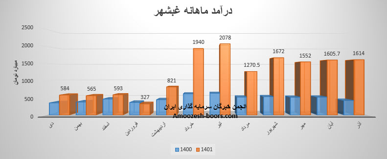 مجموع درآمد نماد غبشهر طی عملکرد 12 ماهه نسبت به مدت مشابه سال قبل 160% رشد داشته است.