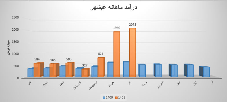 مجموع درآمد سهم غبشهر طی عملکرد 11 ماههنسبت به مدت مشابه سال قبل 155% رشد داشته و نماد غبشهر موفق شده 137 درصد بیشتر از بودجه سال را محقق نماید.