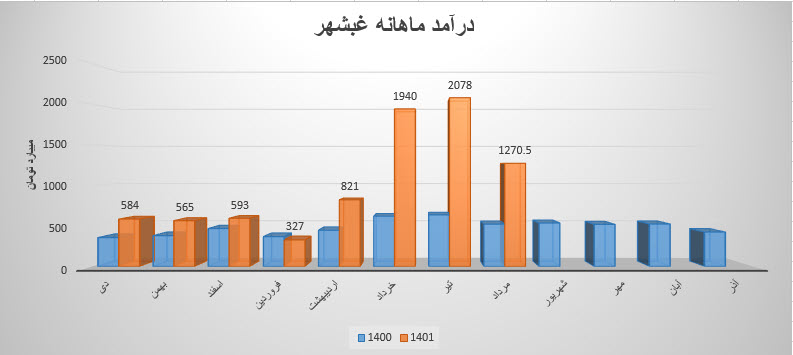 نماد غبشهر نسبت به دوره 1 ماهه مشابه سال قبل 143% افزایش درآمد داشته است.